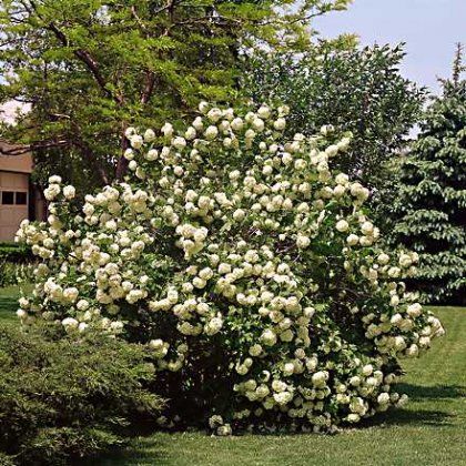 Есть и чисто декоративные сорта с шаровидными соцветиями, состоящими из одних белых стерильных цветков. К ним относится сорт Снежный шар, который не дает плодов. Все сорта калины зимостойки.