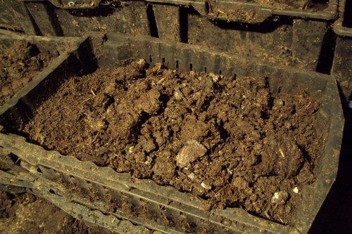 Нижние слои заселены слабо и представляют собой биогумус или червекомпост. Это и есть продукт, ради которого культивируют червей. Его просеивают, если надо — подсушивают и укладывают в удобную упаковку или вносят на грядки. Так за летний сезон на 1 м2 червятника перерабатывается более 1 т компоста 50%-ной влажности и получается около 500 кг биогумуса 50%-ной влажности и 6-10 кг биомассы живых червей.