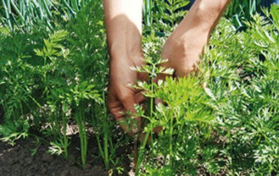 Вторая трудность при уходе за морковной грядкой — сорняки. Сорняки нужно удалять при первом их появлении, так как потом более мощная корневая система сорняка при прополке повредит молодые всходы.