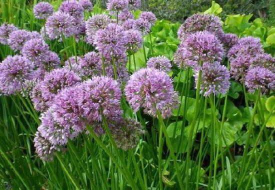 Лук-слизун можно выращивать не только среди овощей на грядках. Интересно смотрятся куртинки этого растения в цветнике. Высокие шаровидные розовые соцветия украшают клумбу почти все лето. Цветки лука-слизуна привлекают пчел.