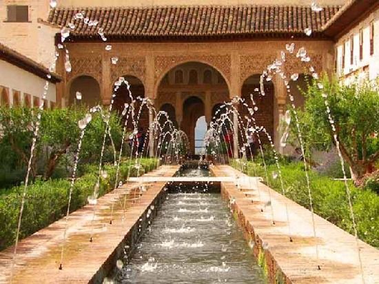 Другой характерный прием создателей исламских садов — особое отношение к воде. Воды всегда было очень немного, но к ней относились как драгоценности: её «подавали» зрителю в виде небольших изящных струек, неглубоких и прозрачных потоков, миниатюрных бассейнов.
