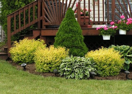 При этом палисадник — это лицо дома. Он очень декоративен и часто даже помпезен. Здесь высаживают оригинальные формы хвойных пород: тисс ягодный, тую западную золотокончиковую, стелющиеся формы можжевельника и шаровидную форму ели европейской.